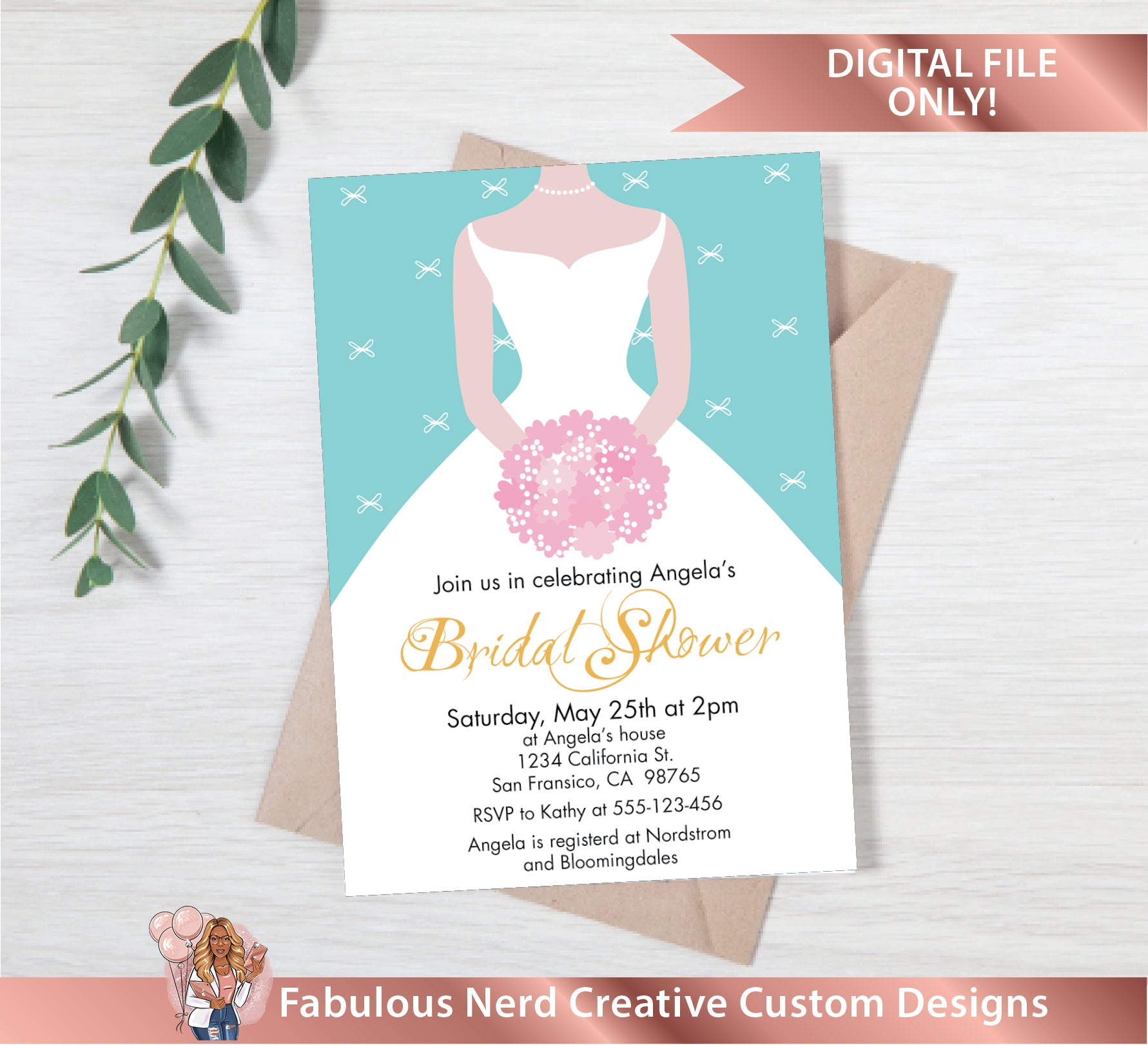 Bridal Shower Invitations-Wedding Gown-Digital File Only
