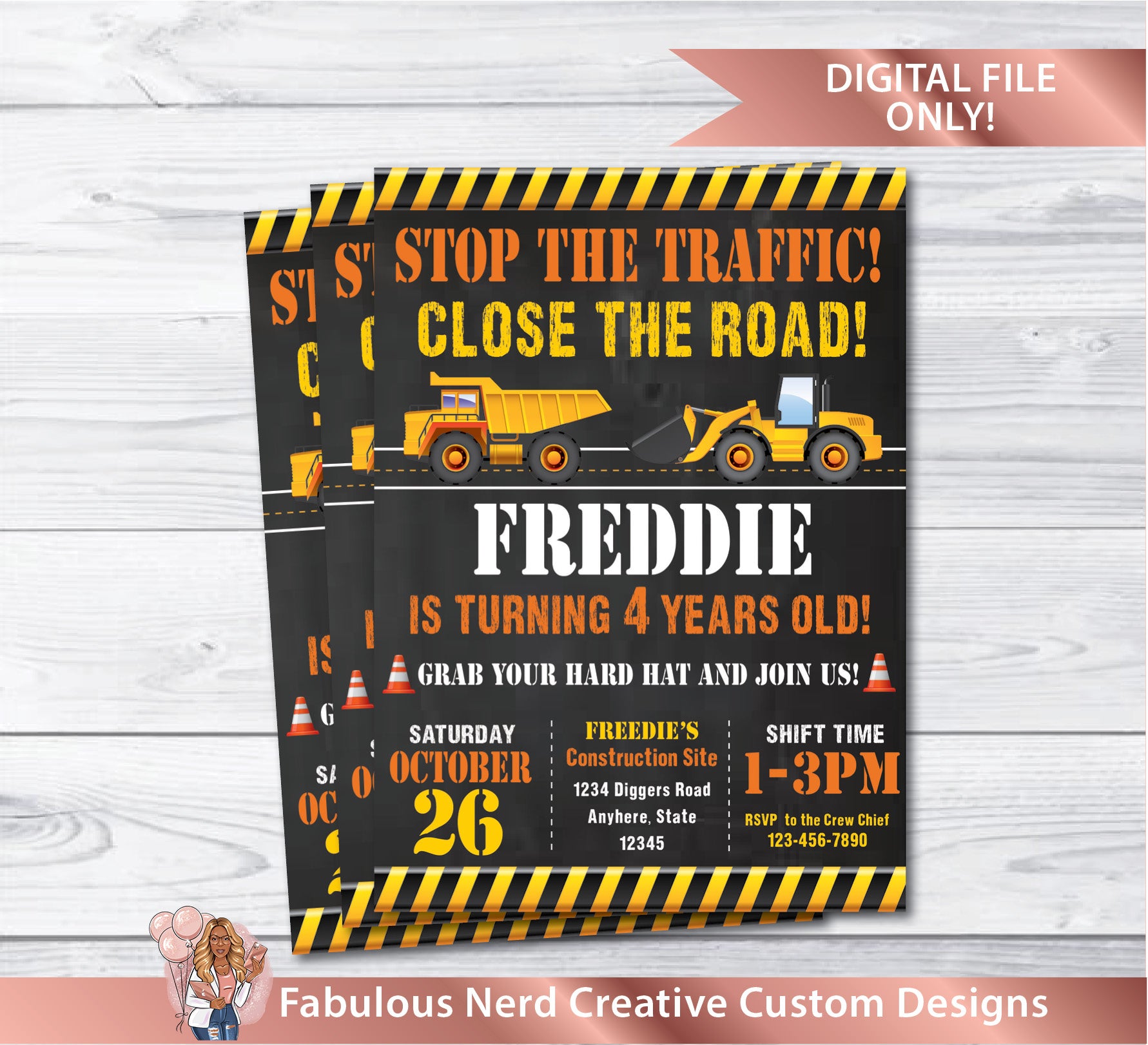 Construction Birthday Customizable Party Invitation - Digital File Only