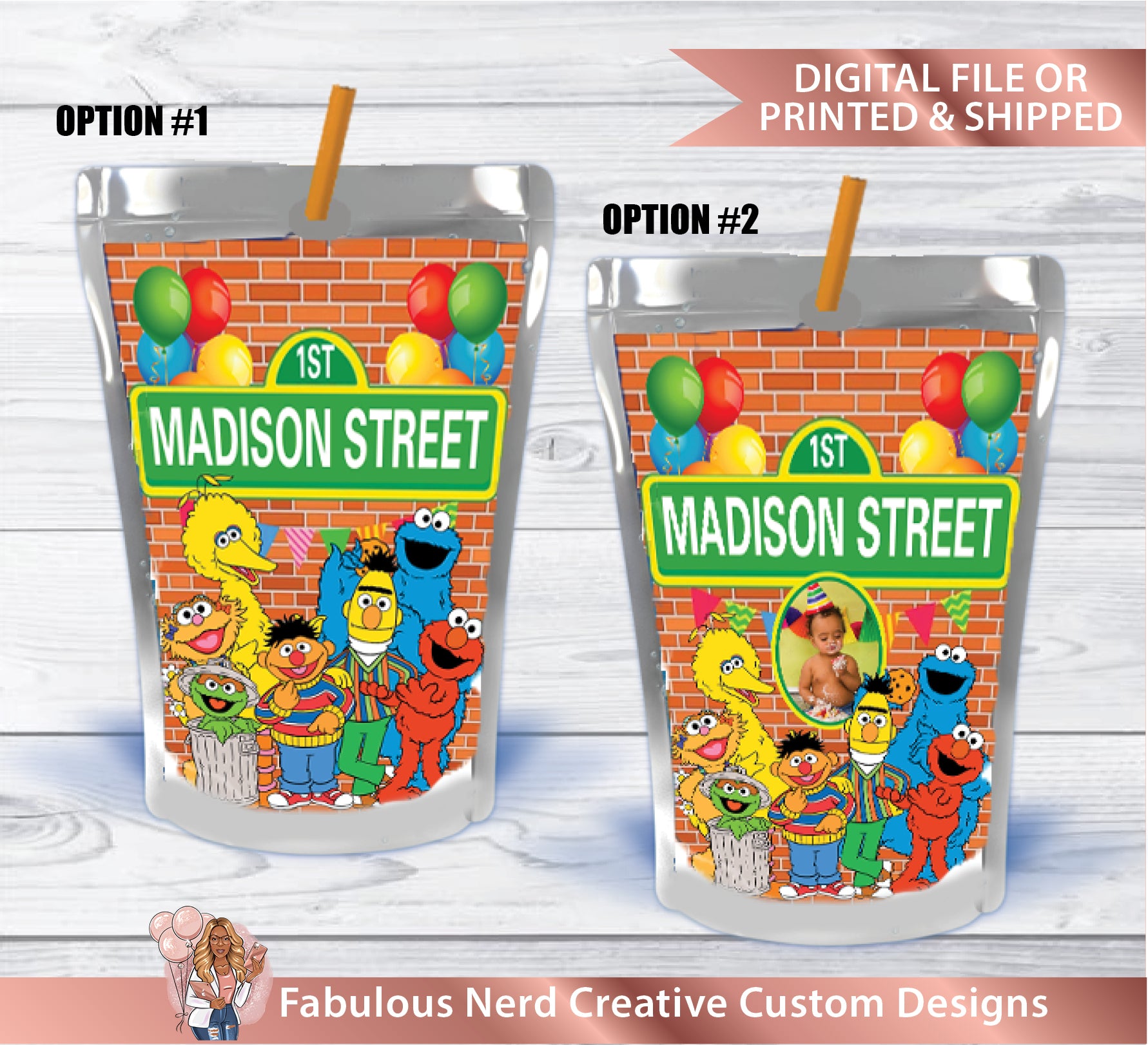 Sesame Street Birthday Customizable Juice Pouch Label-Digital File or Printed & Shipped