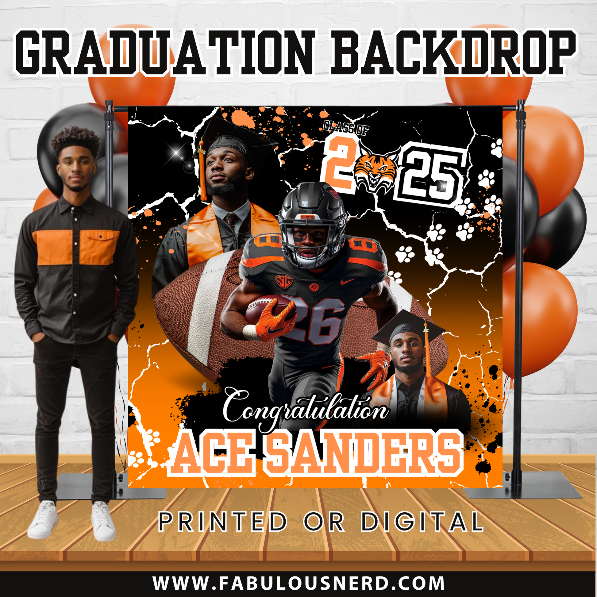 Custom Orange Graduation Party Backdrop - Digital File or Printed and Shipped (STAND NOT INCLUDED)