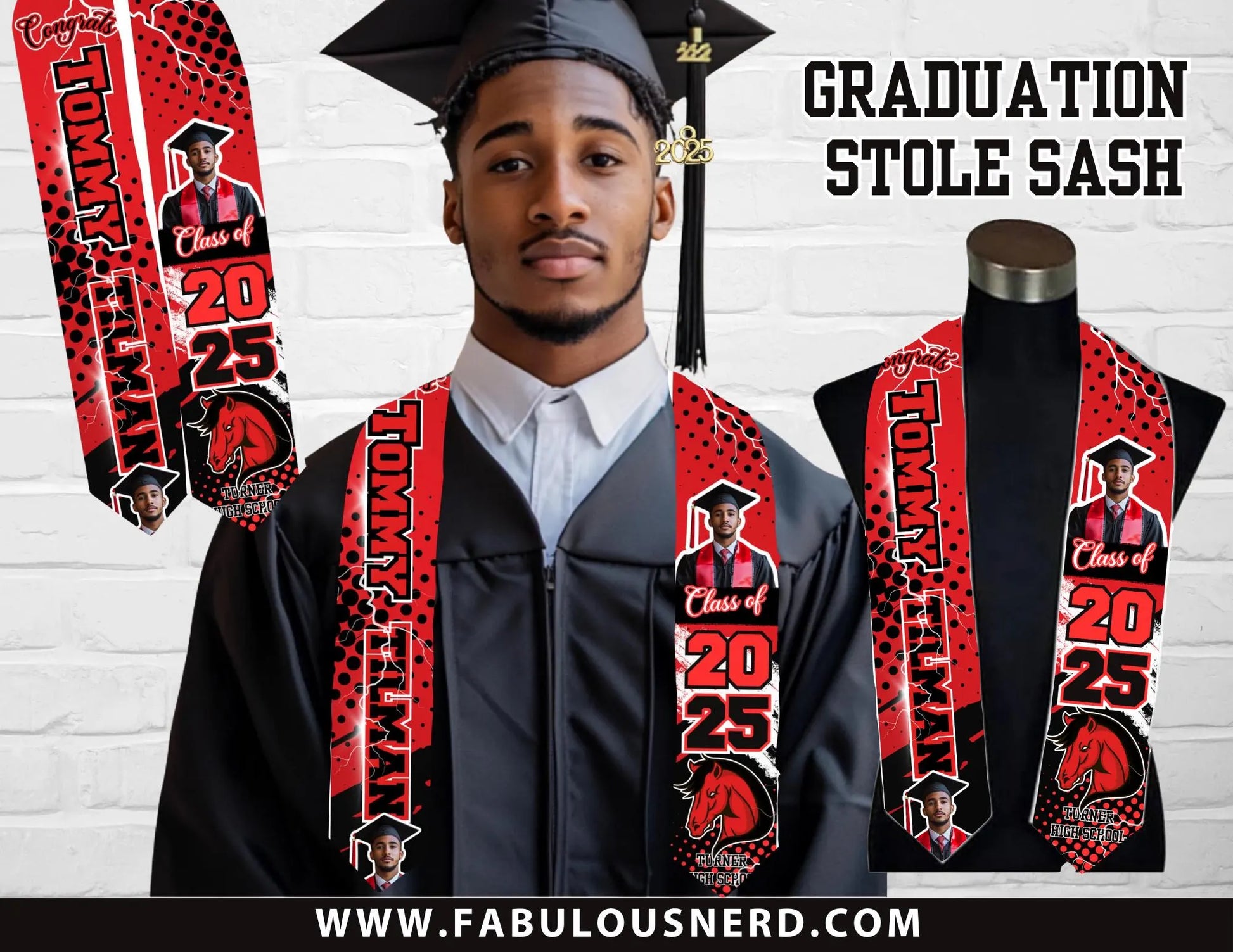 Celebrate your graduate's achievement with a customized graduation stole! Stand out in the crowd with your own unique design and colors. Simply choose your colors and photos, and let us do the rest. Make this graduation day even more special with a one-of-a-kind keepsake.