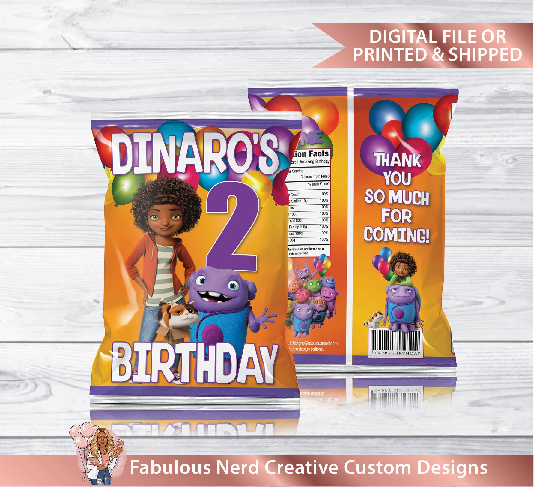 DW Home Birthday Customizable Chip Bag-Snack Bag-Favor Bag-Digital File or Printed & Shipped