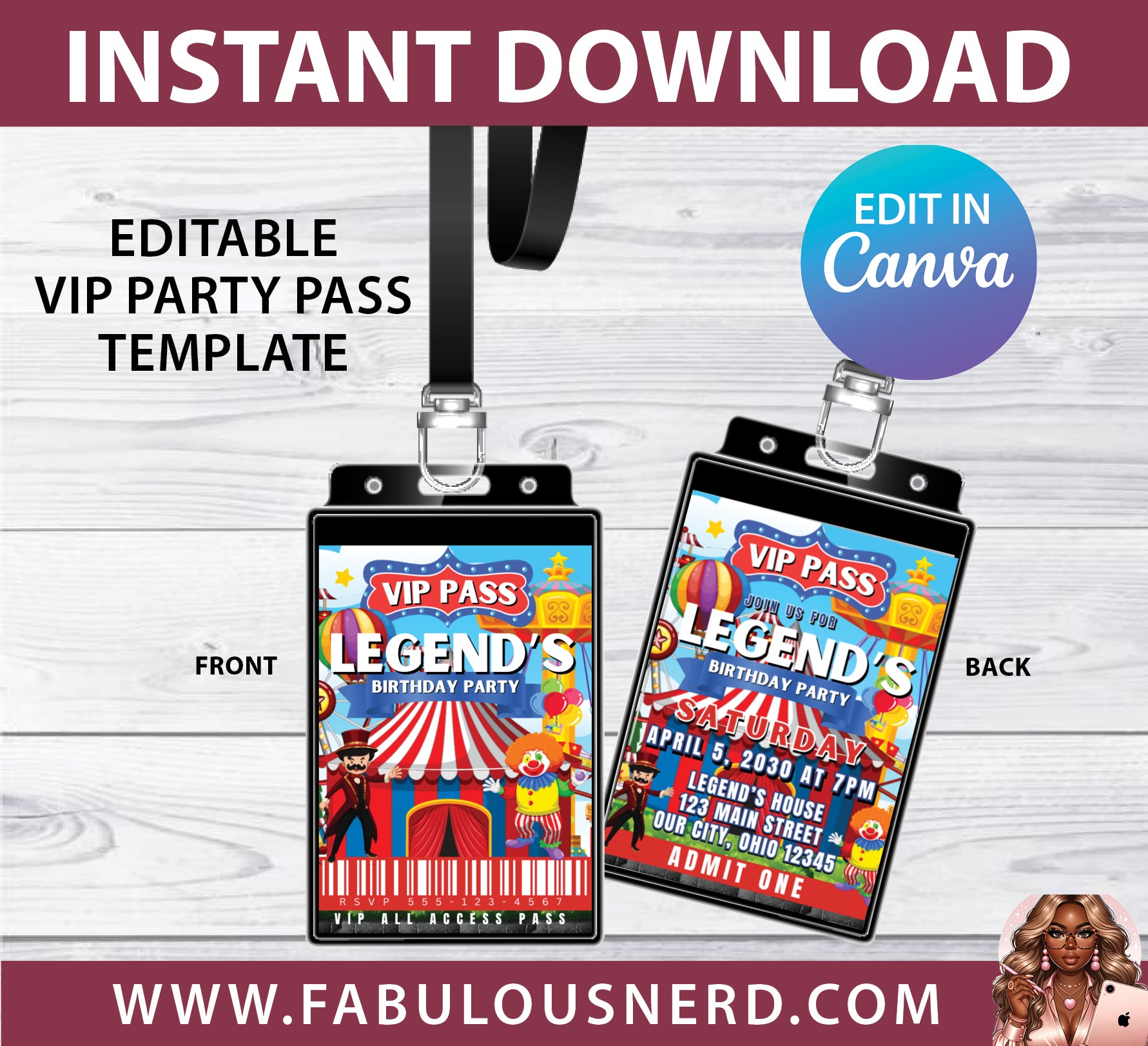 Editable Carnival/Circus Birthday VIP Party Pass/Birthday Invitation
