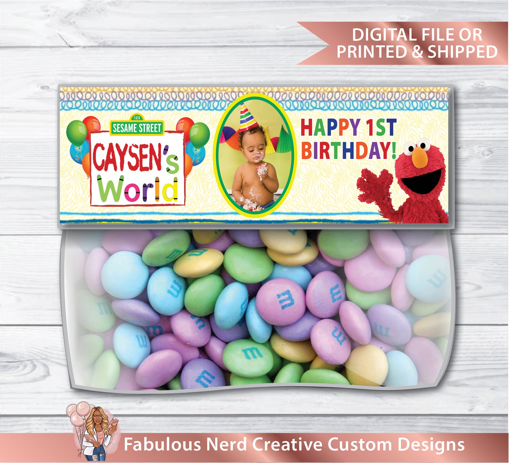 Elmo's World 1st Birthday Customizable Snack Back Topper - Treat Bag Topper - Digital File or Printed & Shipped