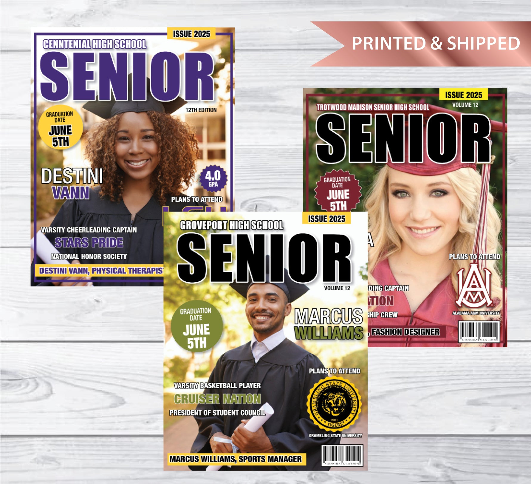 This listing includes the very popular Custom Graduation Senior Magazine Cover with a photo of your choice accompanied by whatever text you would like.
