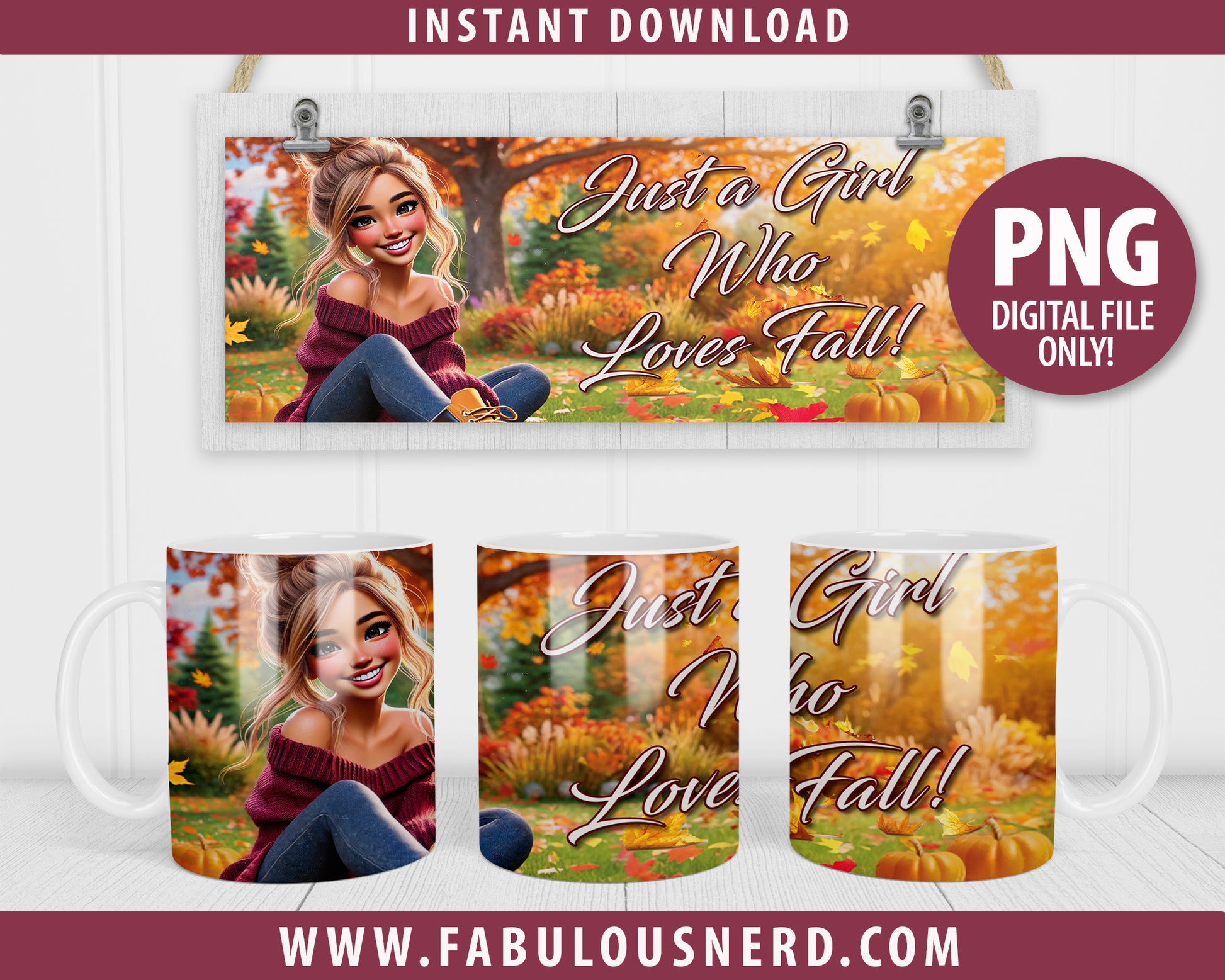 Just a Girl Who Loves Fall Coffee Mug Wrap Sublimation Design-2 (PNG Only)