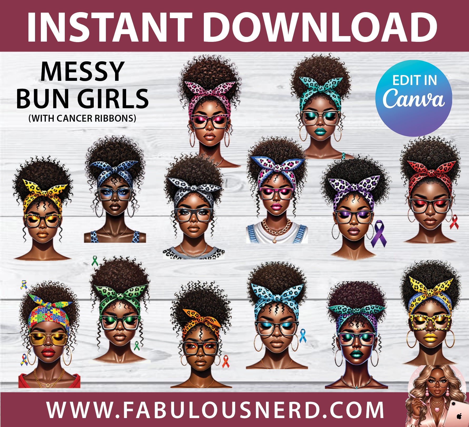 Introducing Messy Bun Girls Bundle (Full Face)! With cute designs and a variety of color options, this bundle is not only perfect for creating sublimation and DTF transfer designs, but it can also be used for Cancer Awareness designs. Edit these designs easily in Canva and let your creativity run wild.