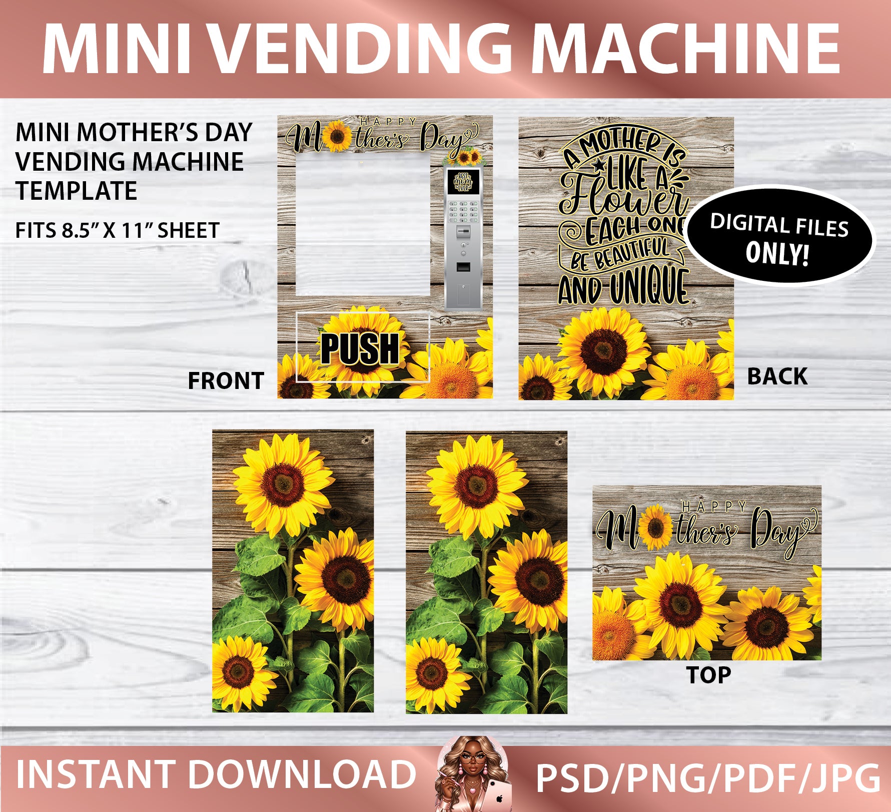 Mother's Day Sunflower MiniVending Machine Template-Red and White (PSD_PNG_PDF_JPG)
