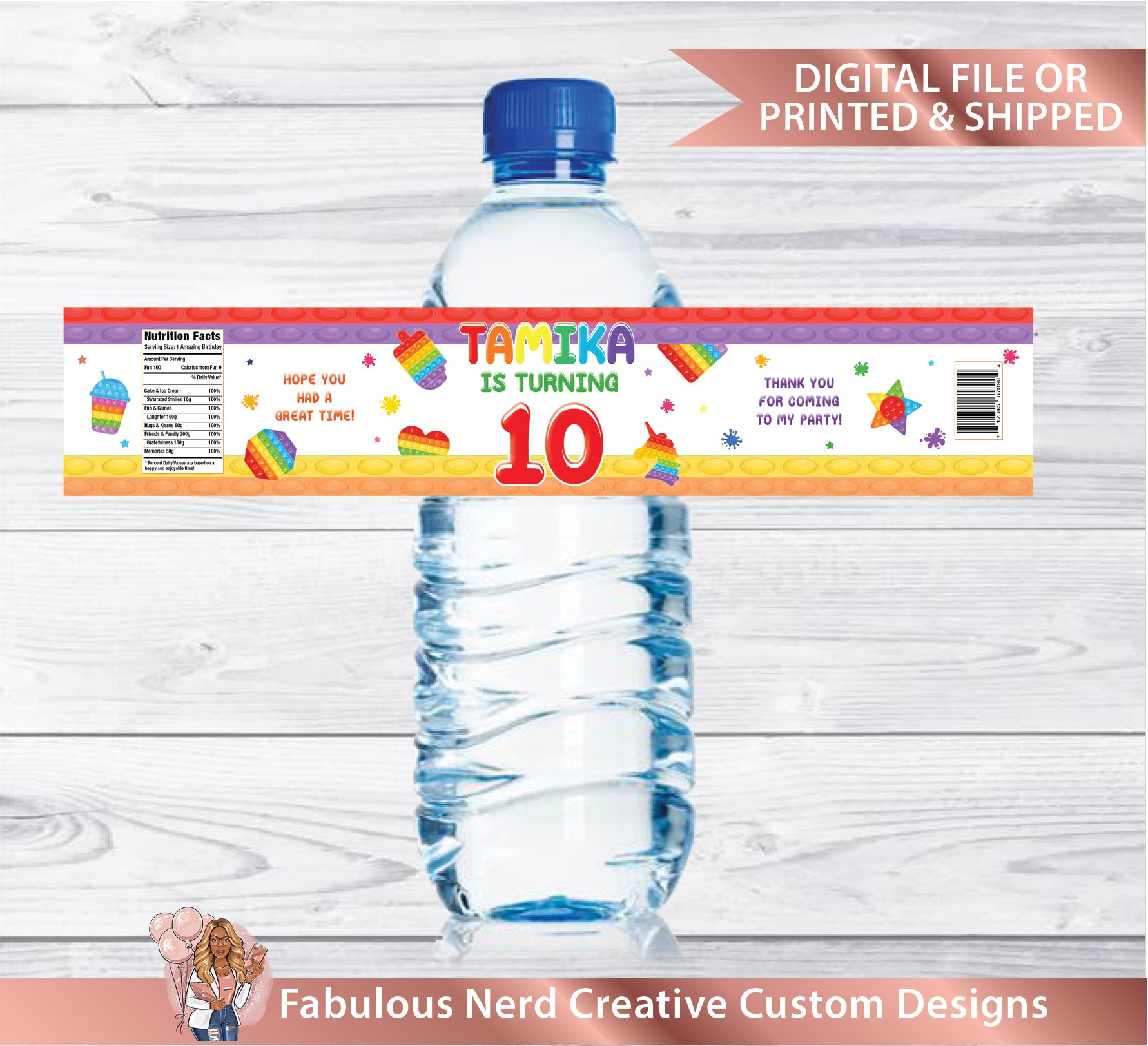 POP IT Birthday Water Bottle Label-Customizable-Digital File or Printed & Shipped