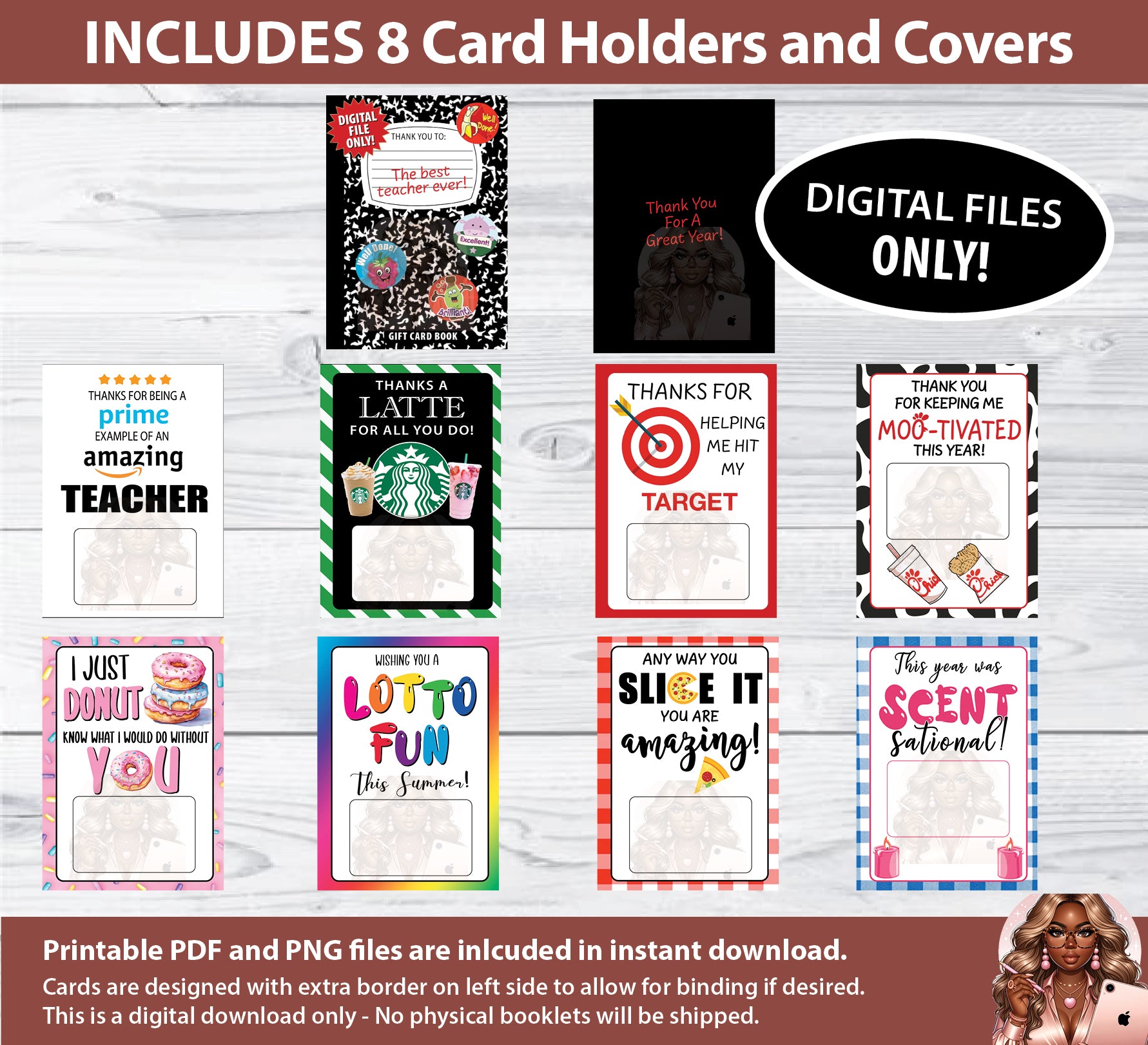 Printable Teacher's Appreciation Gift Card Book/Bundle (PDF/PNG/JPG)