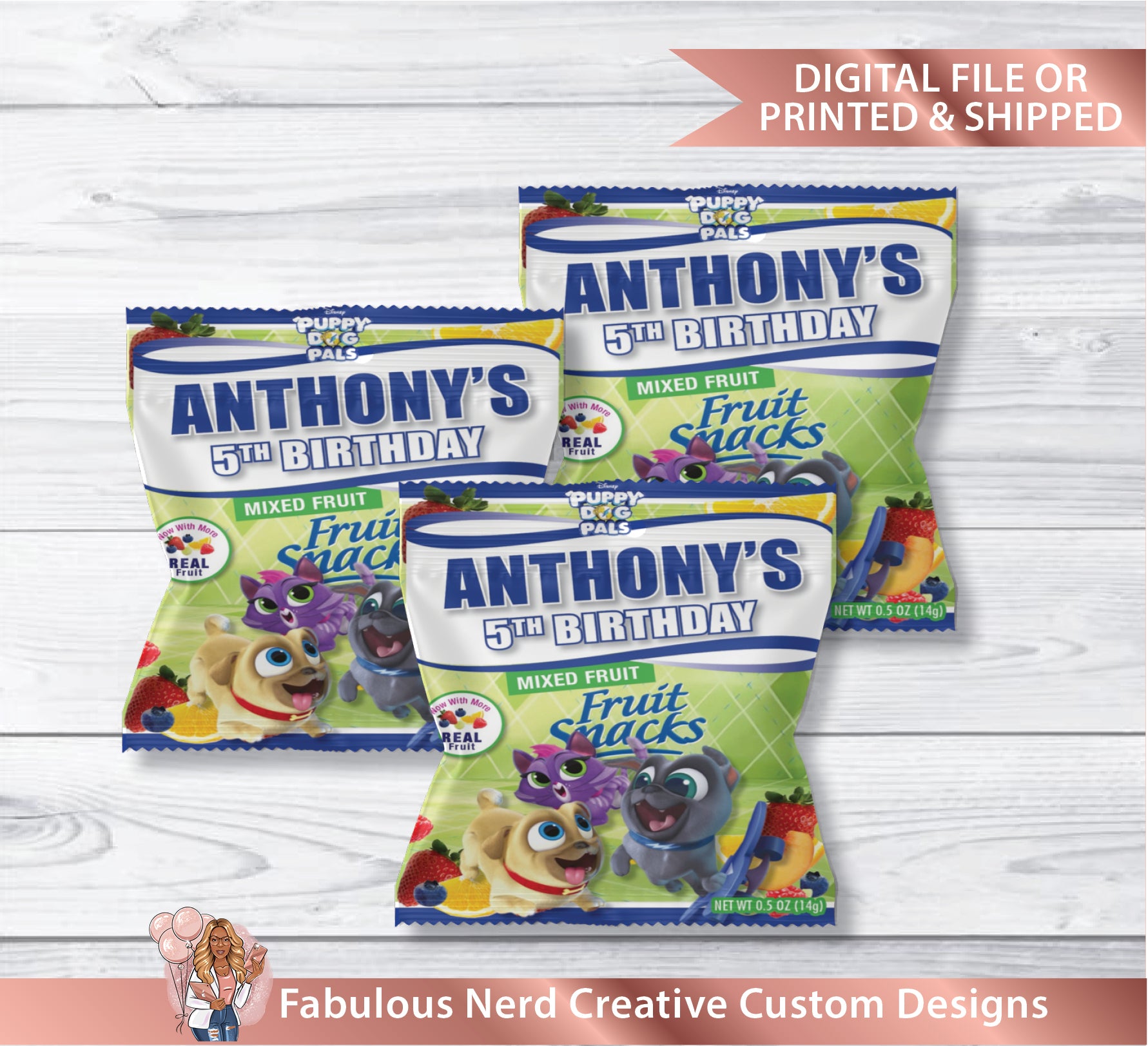 Puppy Dog Pals Birthday Customized Fruit Snack Wrapper-Party Favor-Digital File or Printed and Shipped