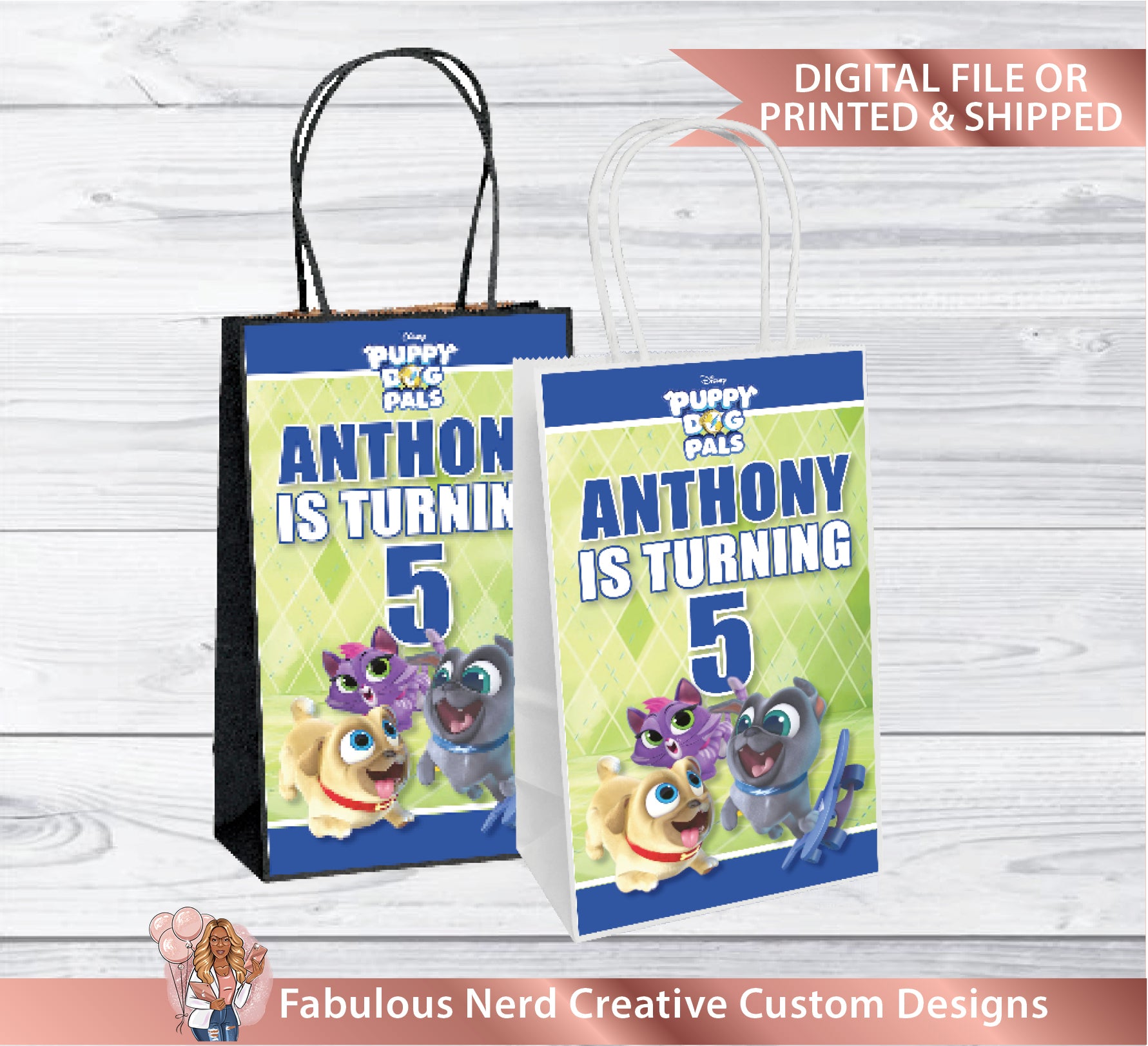 Puppy Dog Pals Birthday Gift Bag Label-Party Bag Label-Party Favors-Digital File or Printed & Shipped
