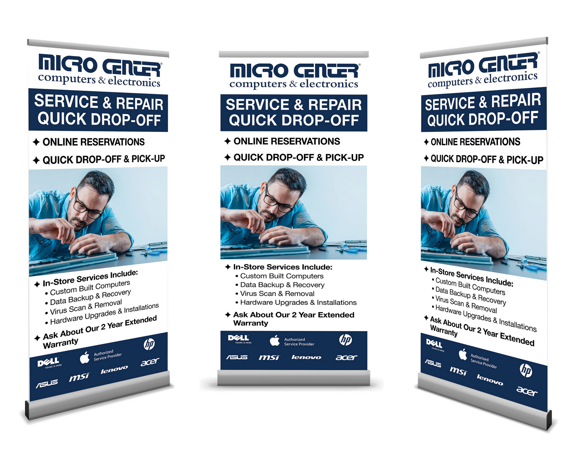 Custom designed retractable banners with stand. Portable and easy to set up.