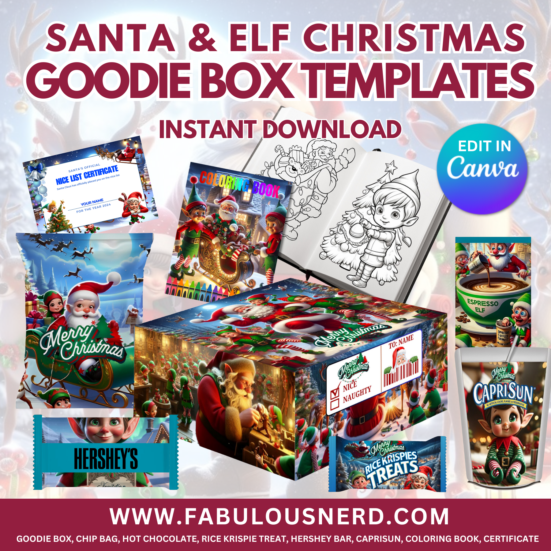 Santa & Elf Christmas Goodie Box Labels - Digital Files Only