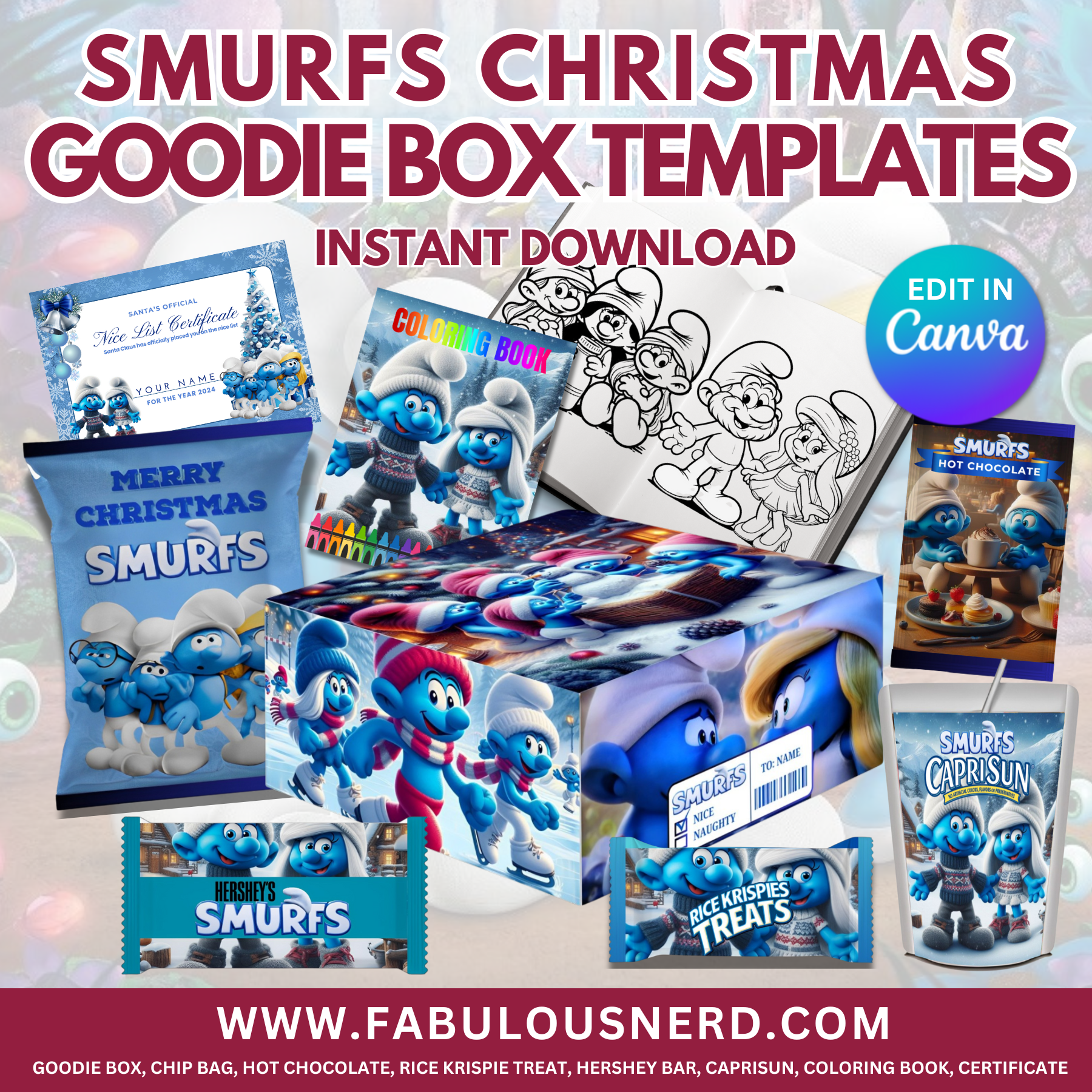Spread holiday cheer with our Smurfs Christmas Goodie Box Templates! These digital files offer the perfect way to package gifts and spread extra joy on Christmas eve. Easy to use and oh-so-cute, these goodie boxes are sure to delight your loved ones. Get yours today and make this holiday season extra special! This unique template is designed for a standard 8"x8"x4" box and can be easily customized in Canva.