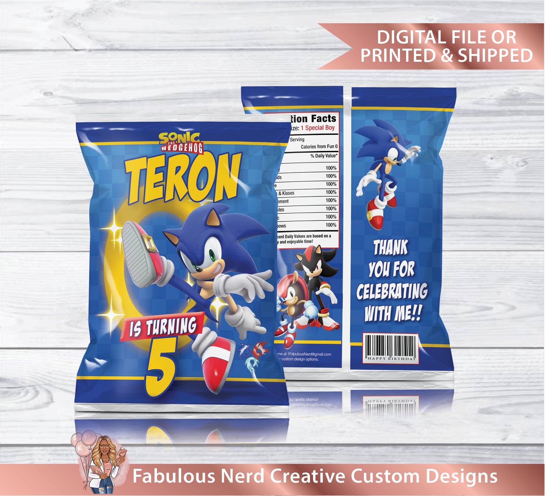 Sonic Birthday Chip Bags - Snack Bags - Treat Bags - Digital File Or Printed & Shipped