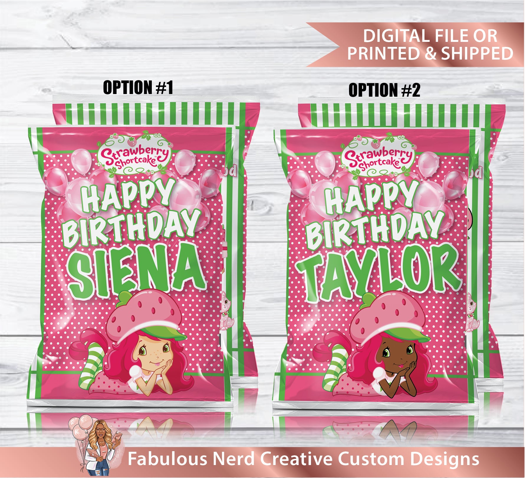 Strawberry Birthday Cake Customizable Chip Bag-Snack Bag-Favor Bag/Digital File or Printed & Shipped