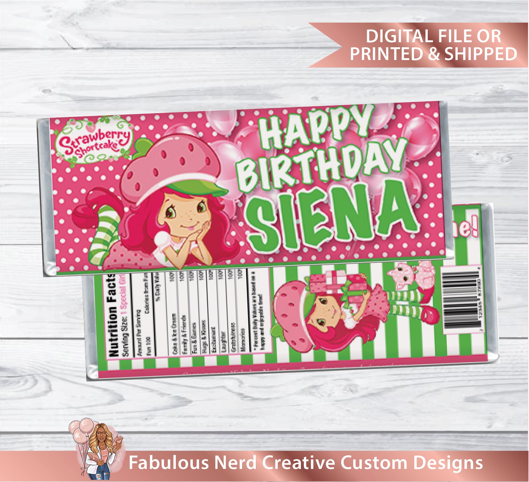 Strawberry Shortcake Birthday Candy Bar Wrapper - Digital File Or Printed & Shipped
