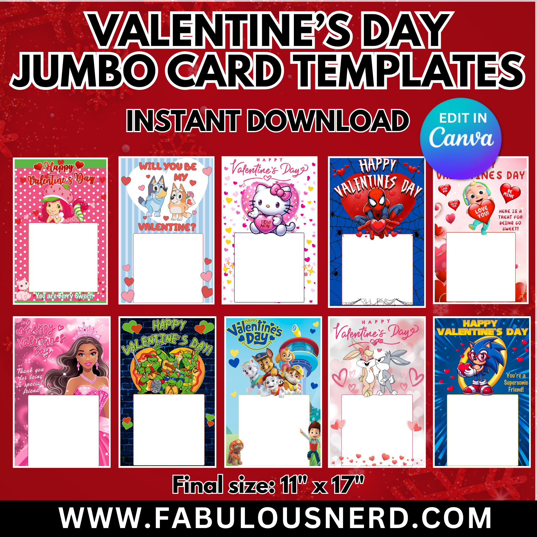 Valentine's Day Jumbo Cards Template Bundles - Digital File Only