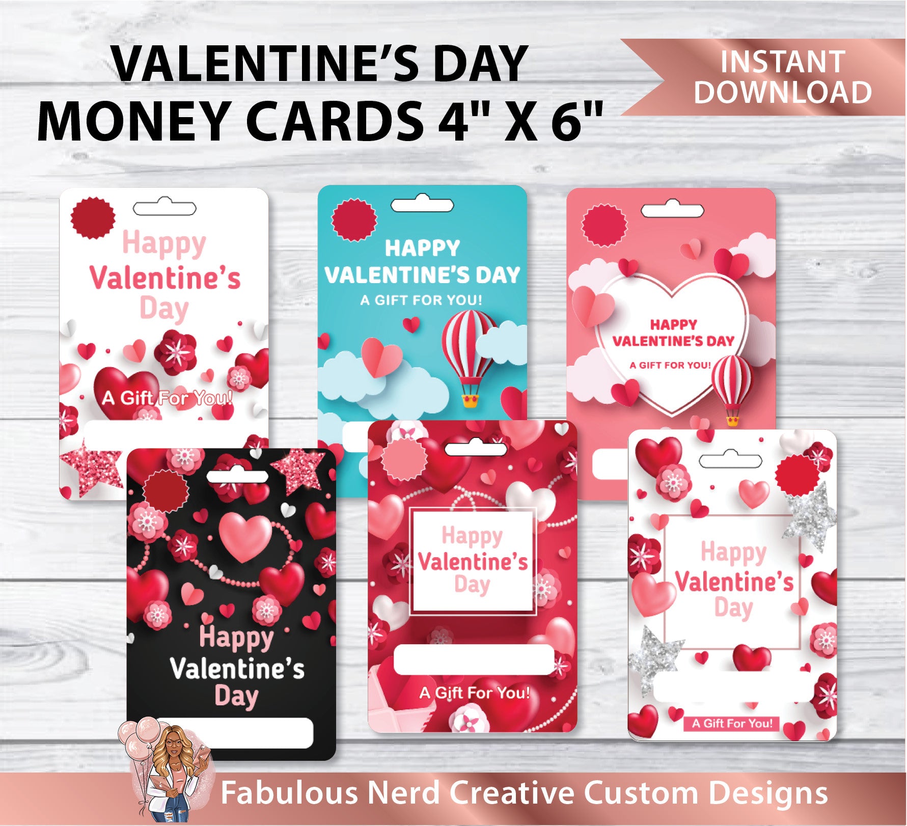 Valentine's Day Money Cards Bundle (4" x 6" PNGs)
